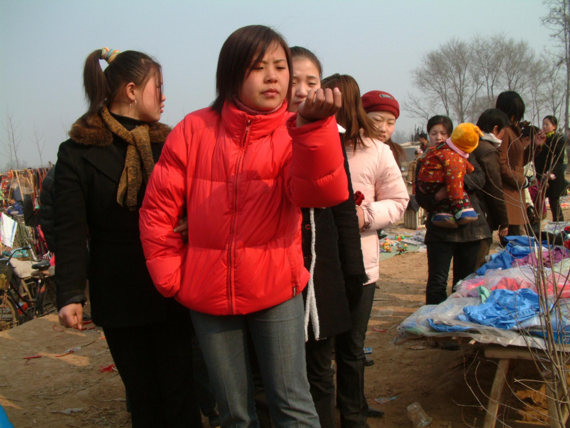 女孩看上去年龄并不大,虽然是素颜,但是面容姣好,也算得上是一个美女了。在大姐给她打耳洞的时候,她没有说话,安静地站在地上,看着前方。旁边是和她一起赶庙会的几个女孩,不停地说着要去哪里买耳环。不过,虽然没有和女孩交流,但摄影师猜测,女孩打耳洞花的钱,应该是父母给的。而一下子花这么多钱(当时10块钱真的算是很多了),为了美花钱也是一点都不心疼啊!