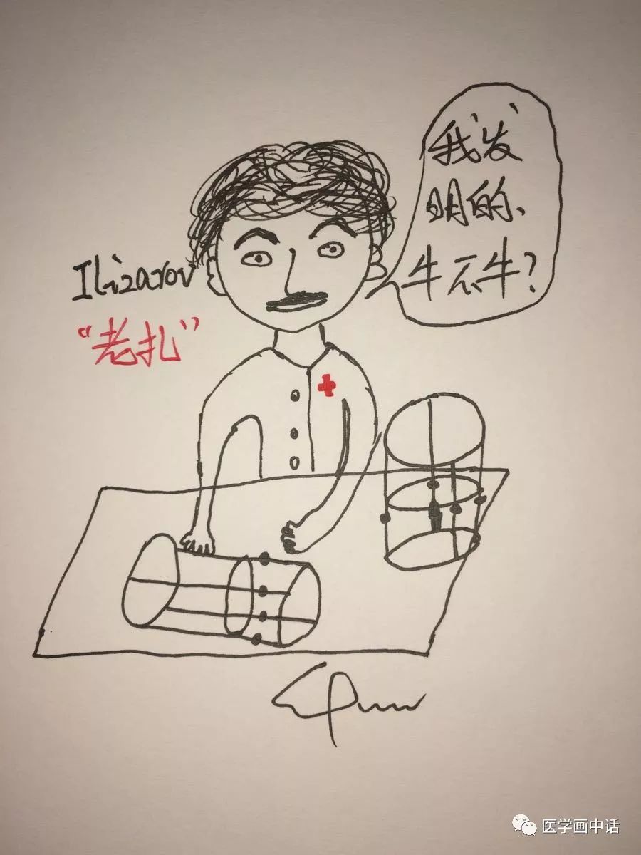 兄弟们、朋友们、各位关注和浏览的老铁们,前段时间小郭医生参加中级考试耽误了一小下下(借口,不要问我通过考试没有),而且本小草已经有主了哦。这一期公众号讲的"骨延长"可不是骗大家的哦,这项技术早就被一个叫Ilizarov("老扎")的俄罗斯老前辈发现并应用,继而传播到世界各地。所以,今天郭医生科普的内容就是把"老扎"发明的技术向大家介绍一下,知道医学中有这么一项技术,以备不时之需。