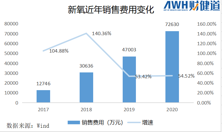 为了进一步“出圈”,新氧做了大规模的品牌投放,在热播综艺《乘风破浪的姐姐》中的植入,令同期站内自然流量大涨228%。但该成绩的价格也十分昂贵,2020年新氧的营销和销售费用为7.26亿元,比去年同期大涨54.5%,占总营收的56%。
