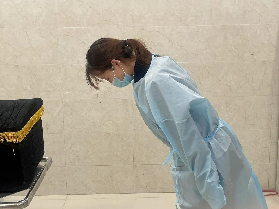 入殓师李淑萍向逝者鞠躬