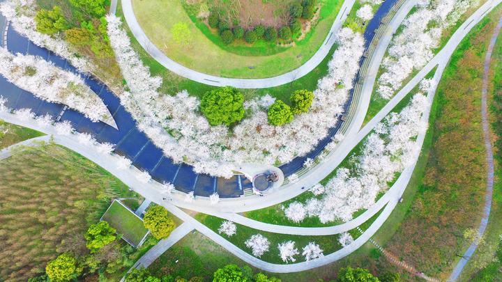 在兰湖旅游度假区,满园樱花,白花似雪。
