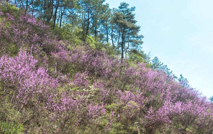 眼下,杜鹃花都已盛开,“杜鹃王国”内百余亩紫、红、白、黄、粉多色杜鹃花姹紫嫣红开遍山坡。
