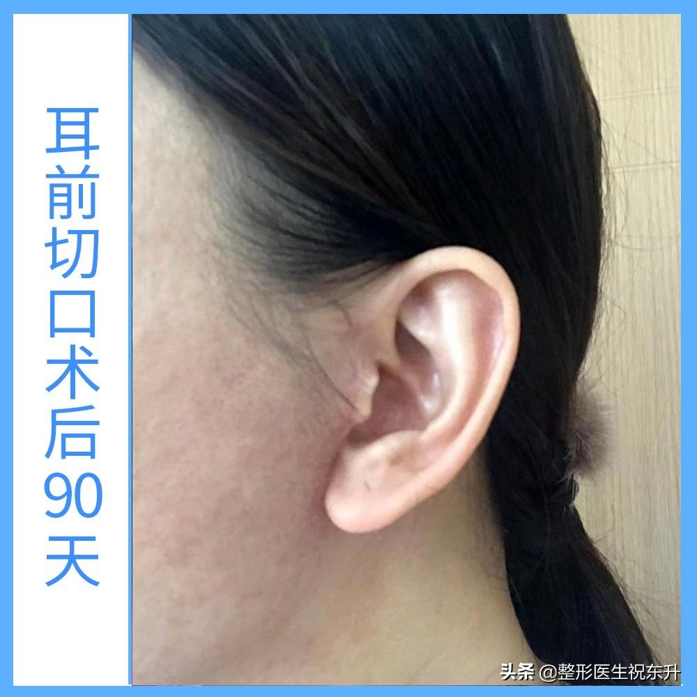 我专门拍了一张耳前切口的照片给担心留疤的姐妹,医生的缝合技术和线材太重要了。