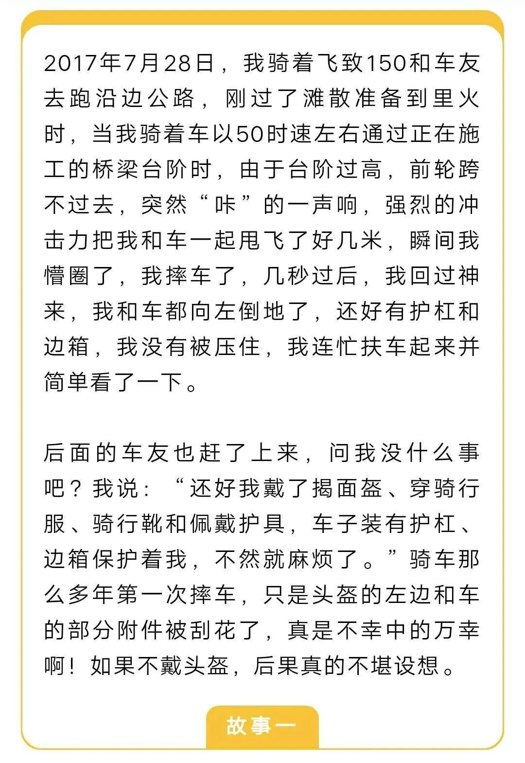 正所谓“吃一堑长一智”,从那以后,无论是上下班还是长短途摩旅,只要跨上摩托车我都戴好头盔和防摔手套、穿上显眼的骑行服,因为我知道“被发现更”的道理。在路上或在车友群,每当我发现他们戴头盔不扣扣,我都会善意的提醒一下他们。