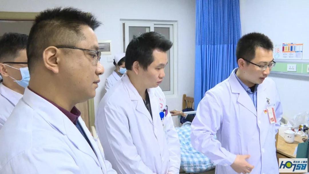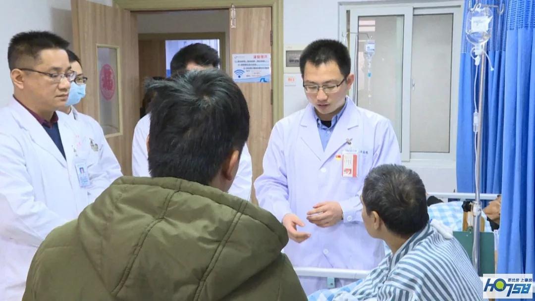 邹兆伟医生看望即将康复出院的陈伯,贴心地叮嘱陈伯一家出院后需要注意的问题。