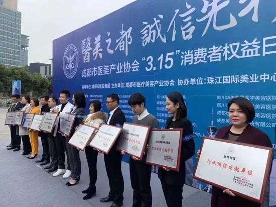 在今年“3.15”消费者权益日期间,协会还向成都八大处医疗美容医院、四川华美紫馨医学美容医院、四川米兰柏羽医学美容医院、成都暄妍医学美容医院等20家医美机构颁发“行业诚信发起单位”牌匾,希望会员单位诚信自律,树立行业标杆,共同推动成都“医美之都”的发展。