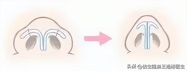 1.鼻头部软组织摘除术:对于于鼻头不软组织过多的状况,选用鼻中隔软骨横切面口或"V"创口,摘除过多软组织。