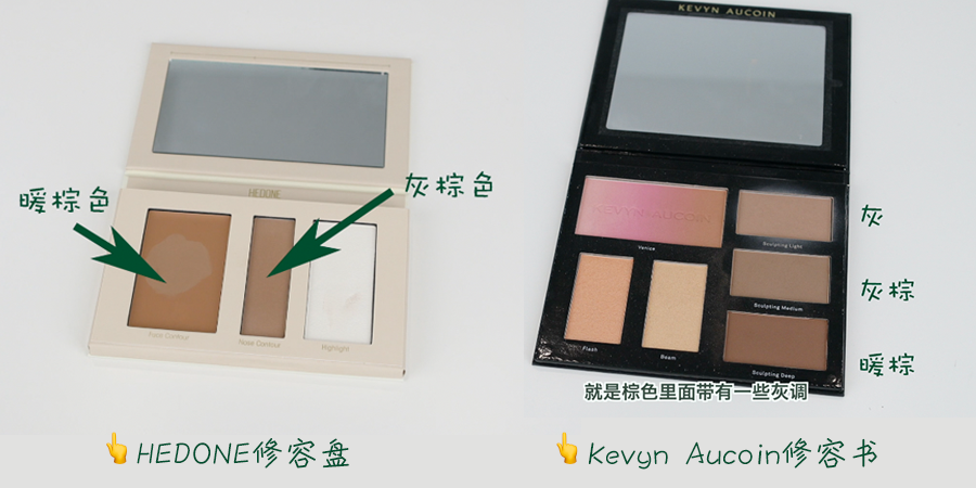 所以处于二者中间的灰棕色调,就是适合进行面部修容的。