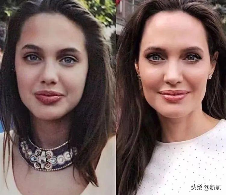 左图是18岁的朱莉,右图是43岁的朱莉,保养已经很好了,还是能发现嘴唇变薄了。