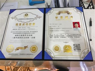 除了药品,机构还会为学员颁发培训证明。工作人员提供的一份毕业证上,标注着学员的身份信息,称其已通过理论和实操考核,授予国际注册医学美容师,发证单位为香港国际整形美容协会。而根据相关规定,这类证书并不具备任何医疗背书作用,更无法作为从业的依据。