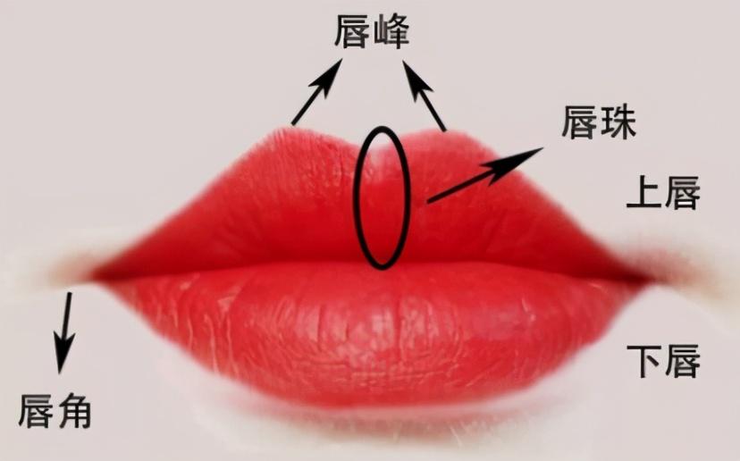 唇红与皮肤的交界处,称为唇红缘,上唇唇红缘呈优美的弓背形,称唇弓,西方艺术家也称之为"爱神之弓"。