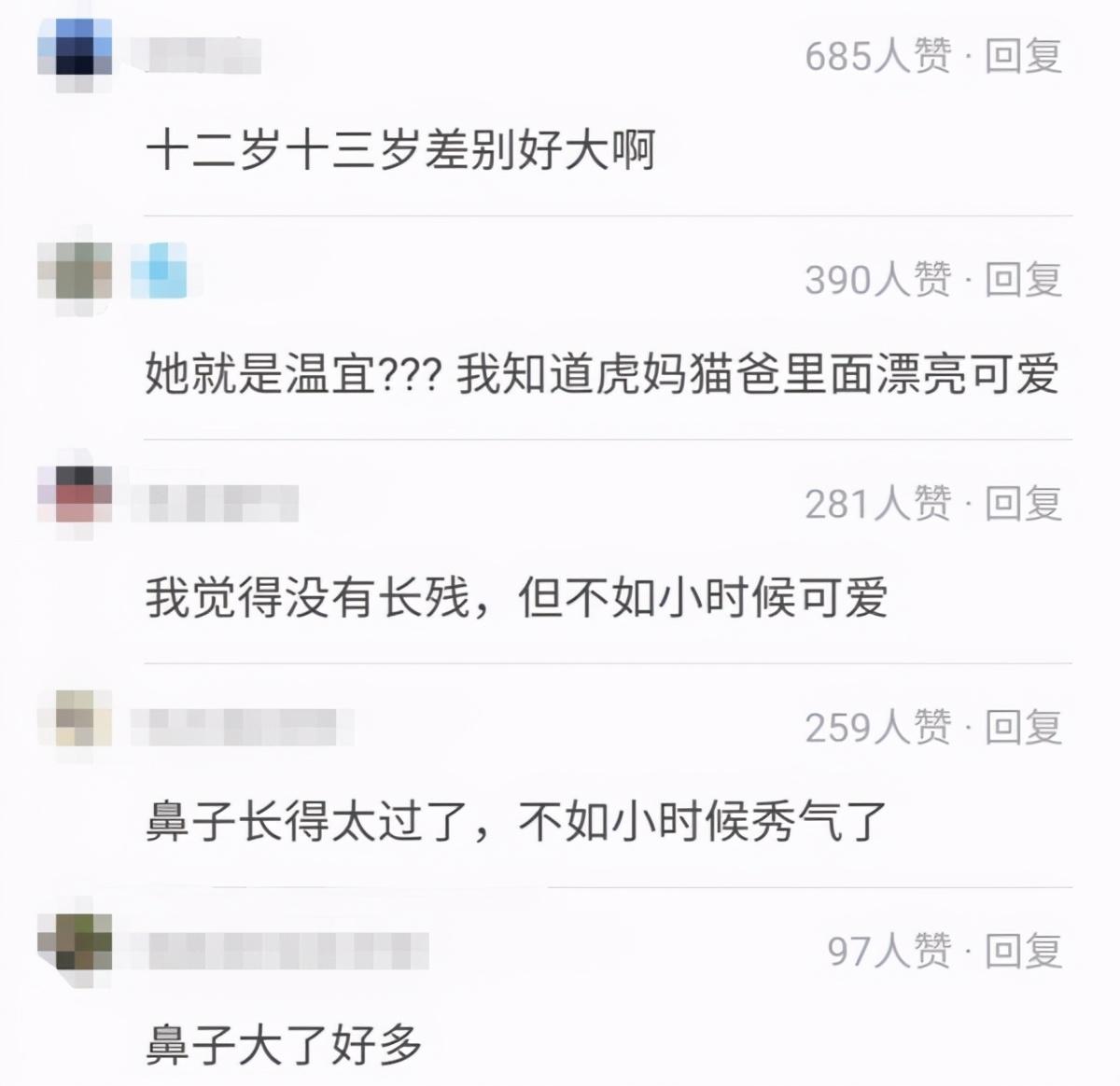 不少网友看到纪姿含如今的模样后纷纷感叹其“变化太大”,甚至戏称其为“整容式长大”,但有网友还是更喜欢她儿时的样子,并表示:“我觉得没有长残,当不如小时候可爱”,也有网友吐槽:“鼻子长的太丑了,不如以前秀气。”
